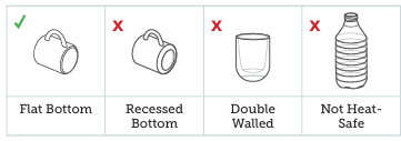 Ans: Glass, stainless steel, or ceramic mugs with thin walls and a flat bottom work well. Because they minimise heat transfer, stay away from mugs with concave bottoms, plastic, or insulated materials.