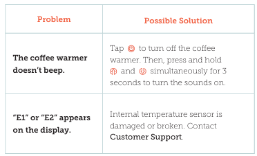 - The coffee warmer will beep once, and the display will light up for 3 seconds. It will turn red.