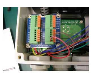 Step 9: First connect the alarm in/out cables to the alarm board (please refer to tables 3&4 for definitions). Secure the alarm board onto the top of the brass pillar with screws.