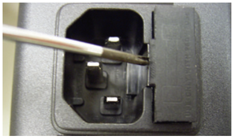 Use a screwdriver D-Link outdoor power box installation to pry open the fuse panel as shown.