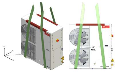 It could drop off if the stability is lost. - Determine the delivery route and deliver the Danfoss OP-FPZP Optyma Inverter unit to the installation place without removing the packing.