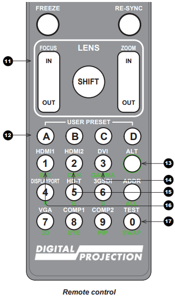 12. TEST / SWAP / numeric input 0 Show a test pattern.Digital-Projection-E-Vision-Laser-7500-Projector-fig-9