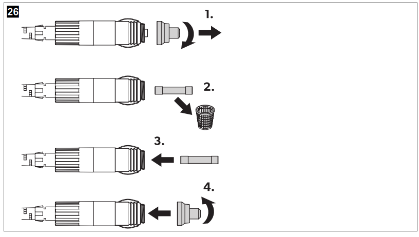 Disconnect the power supply and the connection cable before you replace the device fuse.
