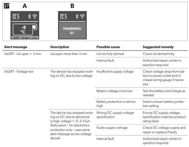 • Power off the device for at least 30 minutes or Dometic CFX5 Series Mobile Cooling move to a cooler location, then restart.