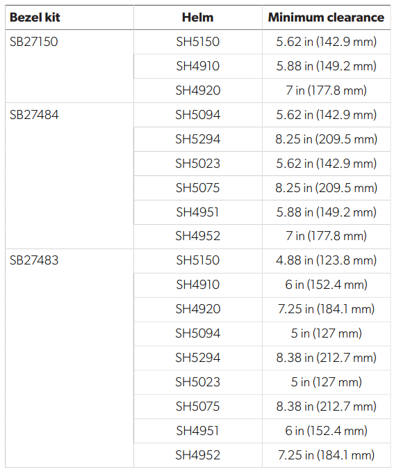 The minimum clearances for the bezel installation depend DOMETIC SB27150 90 Degree Bezel Kit Installation on the bezel kit and helm models.