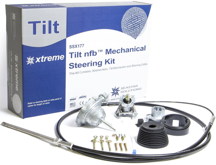 Dometic (previously SeaStar/Sierra/Teleflex) XTREME mechanical steering systems, namely the SSCX64 XTREME cables and SH5094P/SH5095P helm platforms, are compatible with this tilt helm.