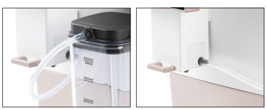 - Next, connect it to the milk supply on the right side of the coffee spout.