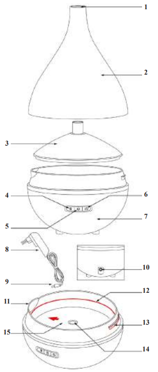 - Place the diffuser on a flat and stable surface and away from the edge.