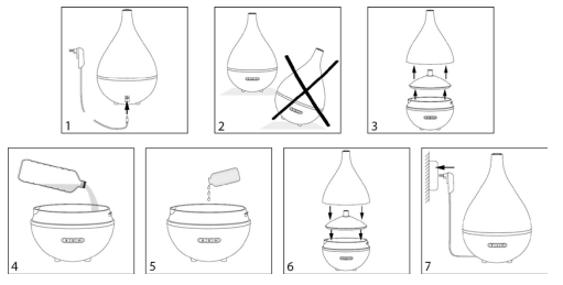- Then add a few drops of essential oils (3-10 drops) or home fragrance to the water tank.