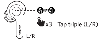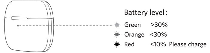 - Open or close the charging case to activate the case battery level LED indicator.