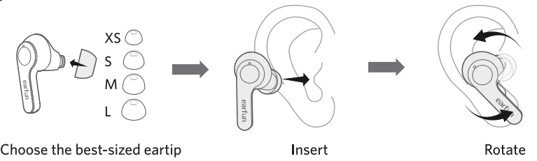 - Please choose the suitable eartip for the best sound and secure fit.
