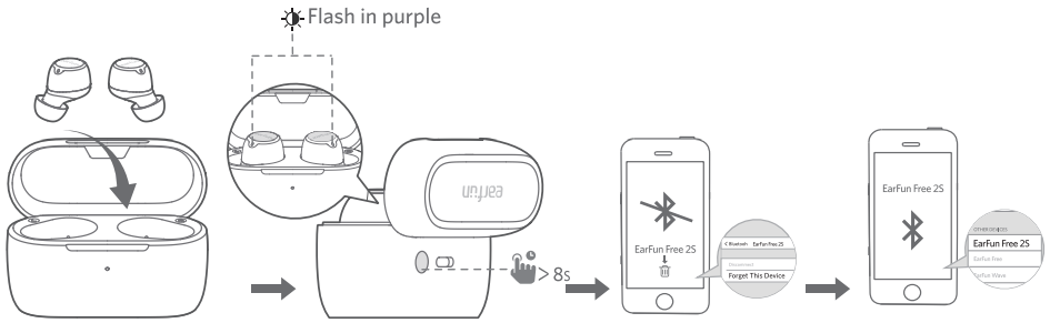 - Delete the previous connection from the Bluetooth device and reconnect to “EarFun Free 2S”.