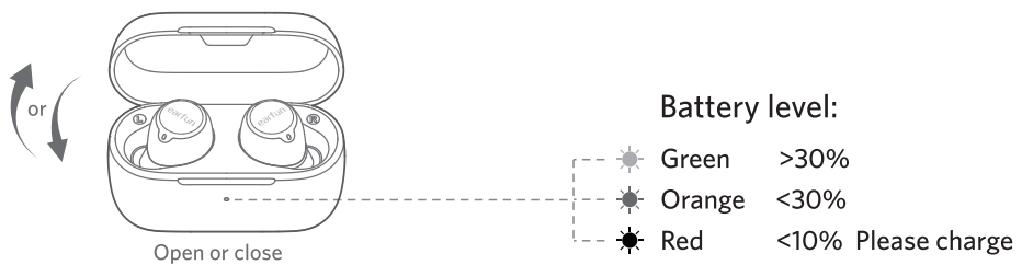 - The earbuds will automatically connect with the device paired last time when the case is open.