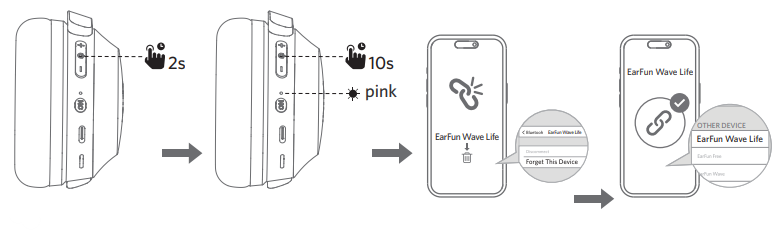 3. Power on the headphones again and then delete the previous connection from the smartphone device and reconnect “EarFun Wave LEarFun-Hp201-Wave-Life-ANC-Wireless-Headphones-fig-13