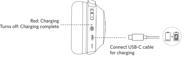 4. The headphones will power off automatically after connecting to the charger.
