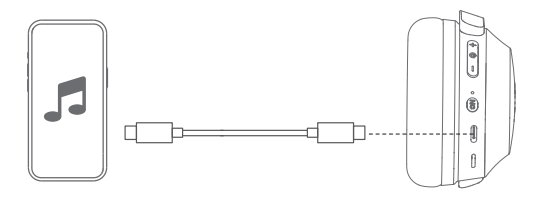 1. Connect the headphone to the PC/Tablet/Smartphone with a USB-C cable for playing USB audio.