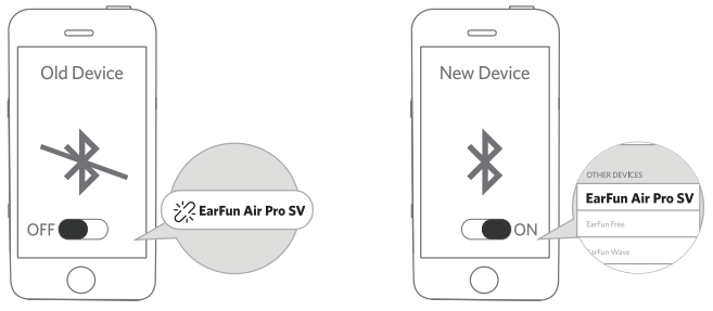 • Delete the old connection from the Bluetooth device and reconnect to “EarFun Air Pro SV”.