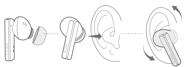 3. Place the earbuds in your canal and rotate to lock.