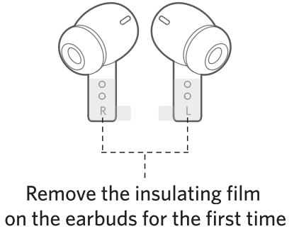 2. Remove the insulating film from the earbuds before using this device.