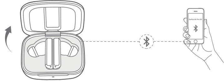 Open the charging case, and the earbuds will automatically power on and enter pairing mode.