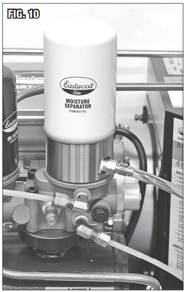 - Check fluid level in Bottle: If at or over the bottom of the label, drain and replace the Moisture Separator only with Eastwood #31716.