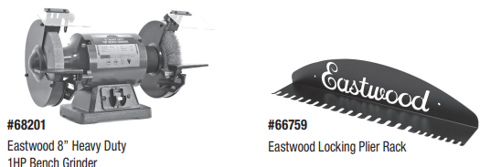 - Check the tightness of the bench grinder mounting hardware and Eastwood Versa-Grind Belt Grinder Attachments’ hardware regularly. Vibration from operation will loosen hardware over time.