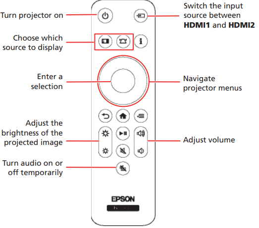 - Press the power button on the remote control to wake the projector from standby or sleep mode, if necessary.