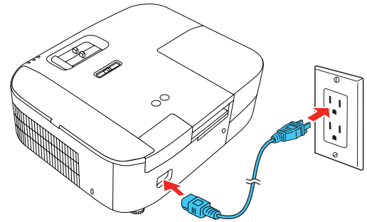 - Plug in the projector. The power light on the projector turns blue.