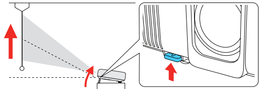 - To raise the image, press the foot release button while you lift the front of the projector. Release the button to lock the foot in position.