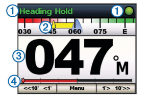- Heading Hold appears in green, and the autopilot status indicator appears in green when the device is in heading hold. Heading trend indicator.