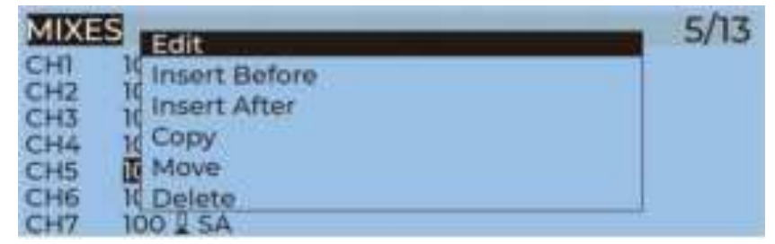 Use the transmitter wheel to move the cursor to select the AUX channel, and then press and hold the wheel key to edit the channel.
