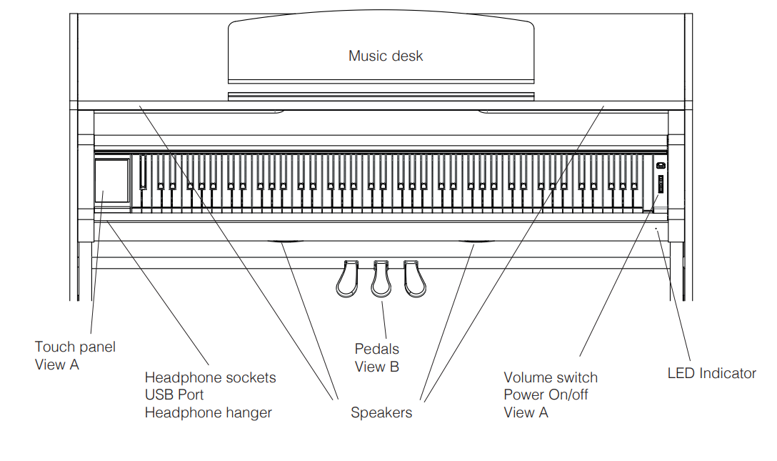 - C5 Power Supply Connect your digital piano to the power supply here, using the power cable.