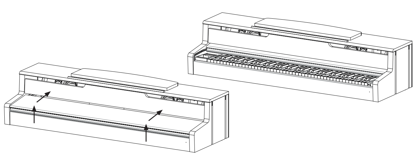 - The digital piano must be placed on securely fastened and weight-suitable, stable, and level floors or platforms.