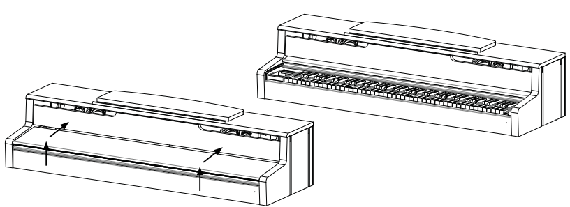 Please make sure to always use both hands to GEWA UP355 88 Keys Black Digital Piano open or close the lid. To open the lid, please follow the drawing below. Oppositely, the lid can then be closed again.