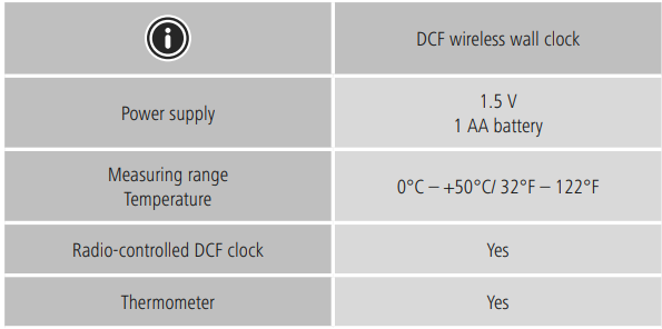 - The clock automatically continues to search for the DCF signal daily (between 1:00 a.m. and 5:00 a.m.). If the signal is received successfully, the manually set time and date are overwritten.