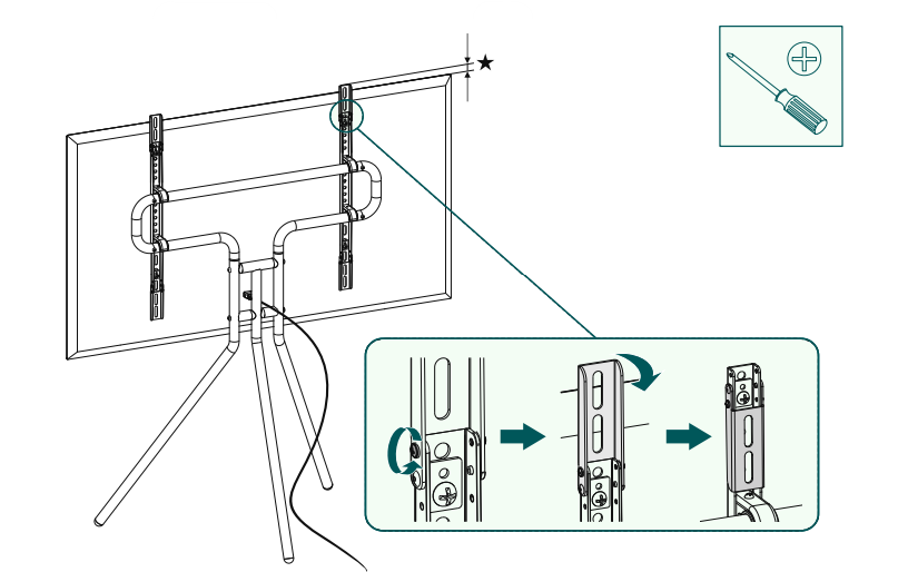 - Use the fold-out VESA arms to mount the TV at the desired height.