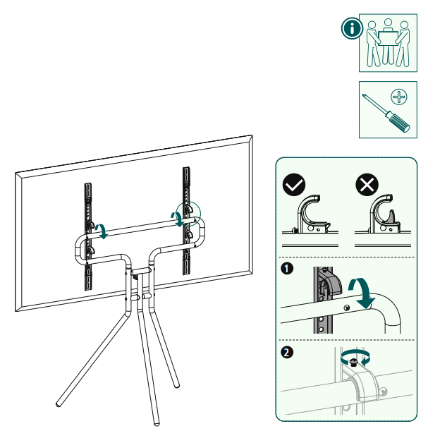 - Please ensure that the bracket lies flat and evenly on the back of the television.