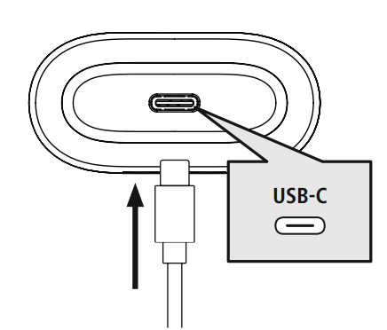 When the battery is low (< 20%), the status LED (3) on the earphone flashes every 5 seconds twice