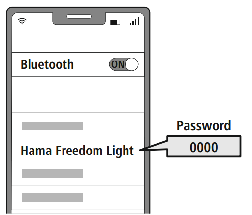 Open the Bluetooth® settings on your device and wait until the list of found Bluetooth® devices shows Hama Freedom Light. Select Hama Freedom Light and wait until the earphones are shown as connected in your device’s Bluetooth® settings. You will hear a brief signal tone.