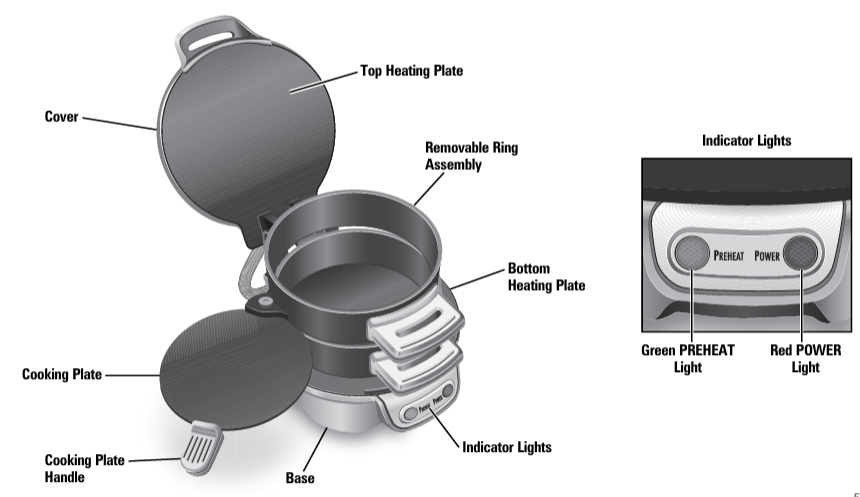The appliance should always be closed and allowed to preheat until the indicator light indicates that it is ready. Preheating keeps things from sticking and guarantees uniform browning.