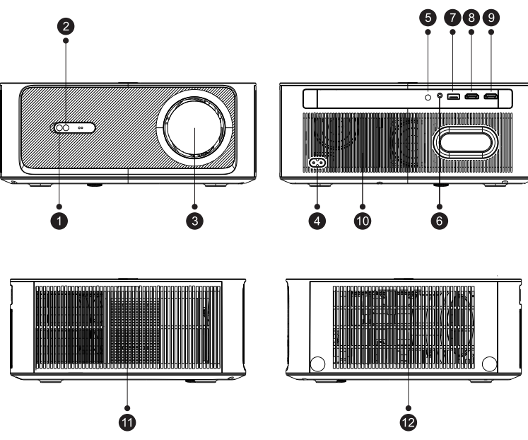 - Please make sure that the working environment of the projector is dry and ventilated.