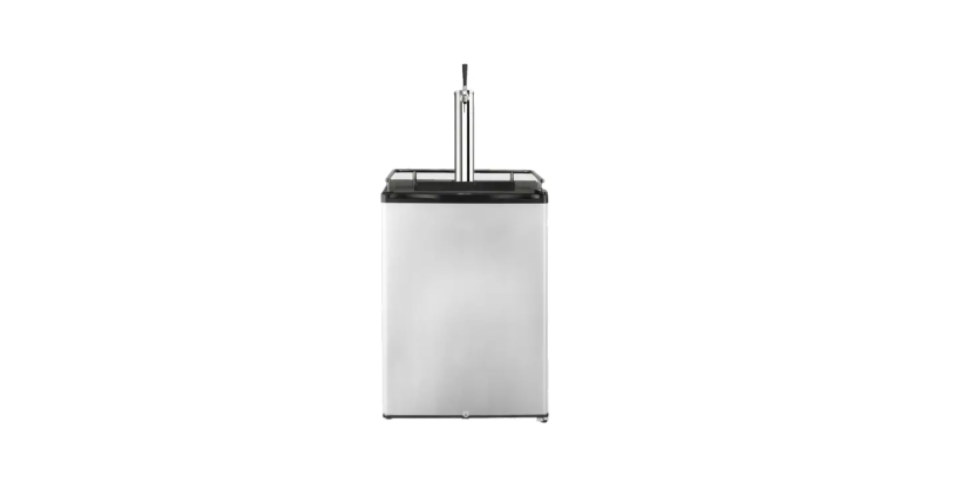 The draft beer faucet is the tap from which the beer is dispensed. The kegerator includes a quality