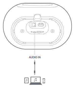 - The Omni 10+ and Omni 20+ both have an Audio In connector on the bottom for playback of local analog sources. Connect a 3.5mm stereo auxiliary cable (sold separately) to the Audio In connector on the speaker, and connect the other end of the cable to your analog audio source device.