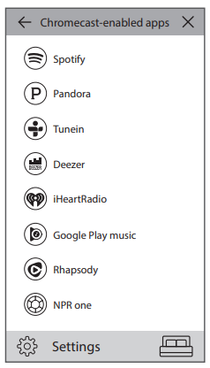 Chromecast built-in works very similarly to Spotify Connect, except it is supported by a large and growing number of music apps and services. If the music app you are using supports Chromecast built-in, you will see the Cast button in that app.