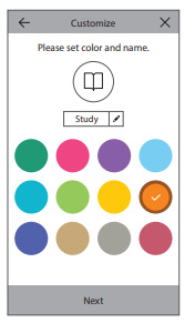 - After selecting a room name, you will be able to customize the room with a specific color. There are twelve different colors to choose from.