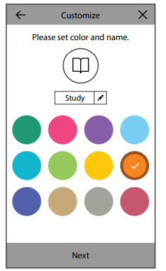 - After selecting a room name, you will be able to customize the room with a specific color. There are twelve different colors to choose from.