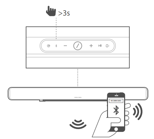 Press the Bluetooth Button to enter Bluetooth pairing mode on the Omni Bar. This button will also switch the currently active source to Bluetooth. Note that on the Omni Adapt+, you must press the Source button for 3 seconds to enter Bluetooth pairing mode instead.