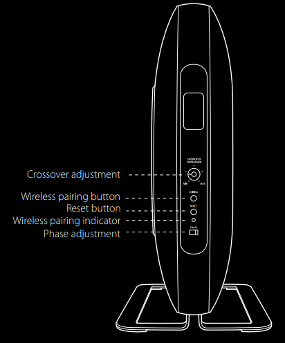 Your Omni Bar+ comes from the factory already paired with the wireless subwoofer. If you ever need to reconfigure or replace your Omni Bar+ or wireless subwoofer, you can connect them again by pressing this button on both the Omni Bar+ and the wireless subwoofer. The LEDs will begin flashing quickly, and after 30 seconds, the connection will be complete.