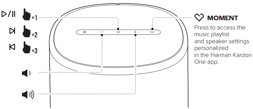 If you also use other Harman Kardon speakers, like the Onyx Studio series, you can check its guide here: Harman Kardon Onyx Studio Wireless Speaker Manual. Stream music through the Harman Kardon One app or supported music services.