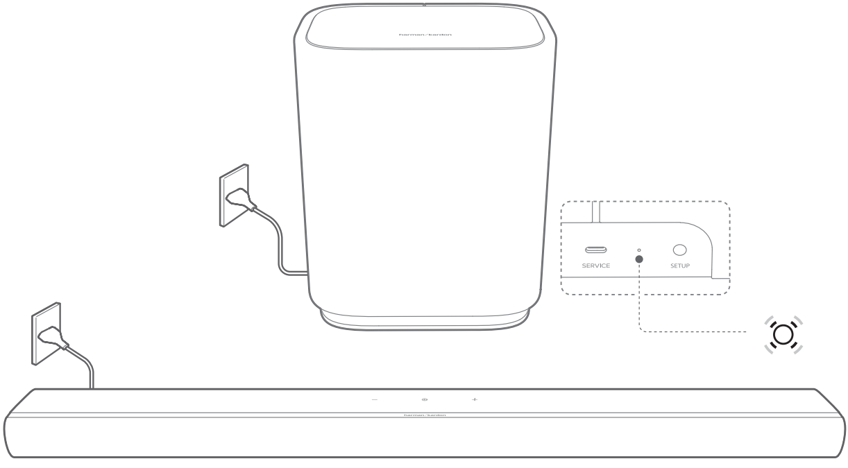 - Connect the subwoofer and your Enchant soundbar to power. (Slow pulsing white): ready for setup.
